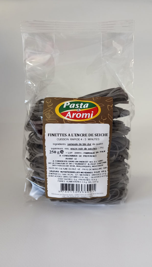 | Ingrédients | semoule de BLE dur de qualité supérieure, eau, encre de seiche(3%). |