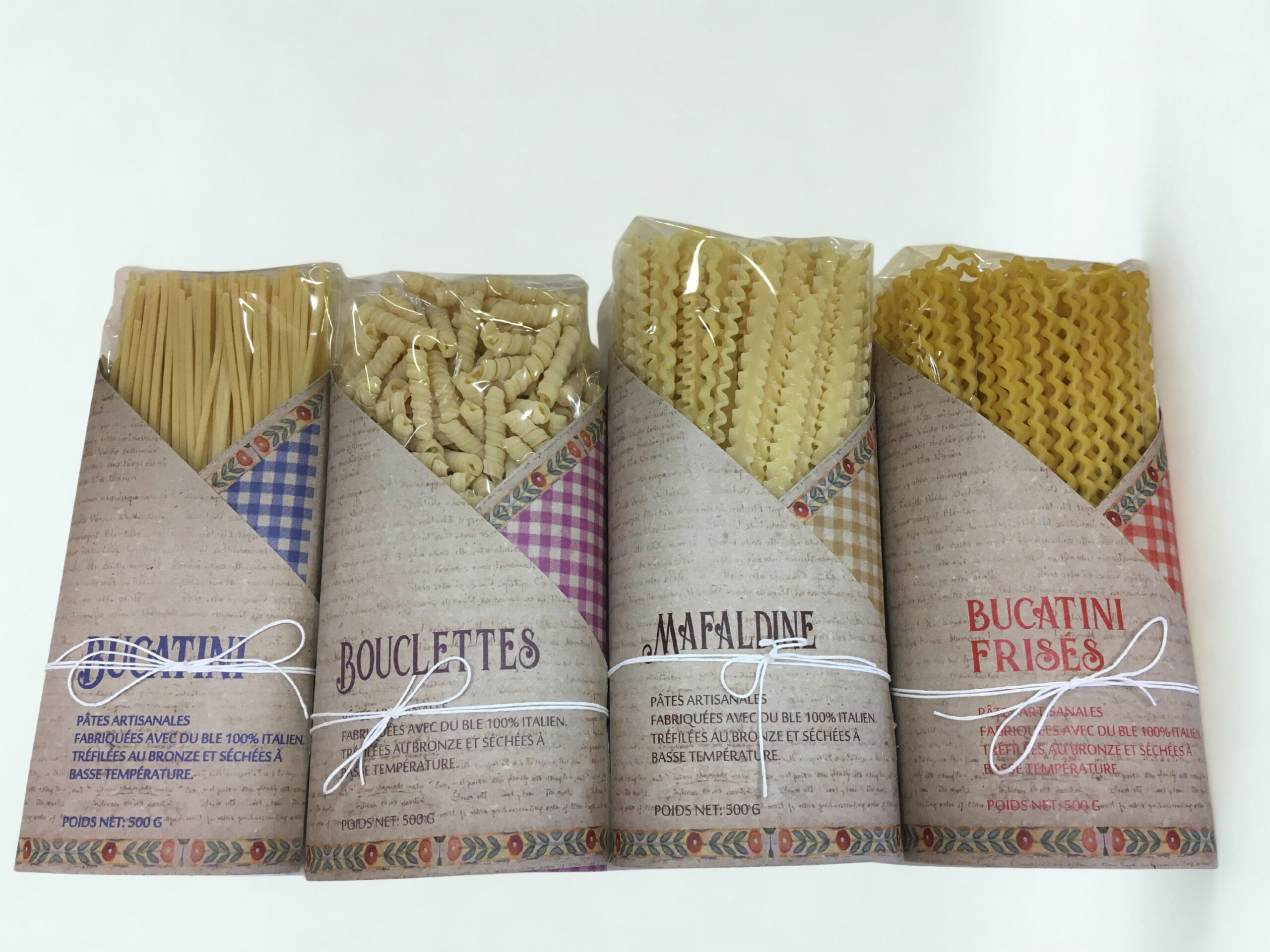 Pâtes artisanales tréfilées au bronze et séchées à basse température
