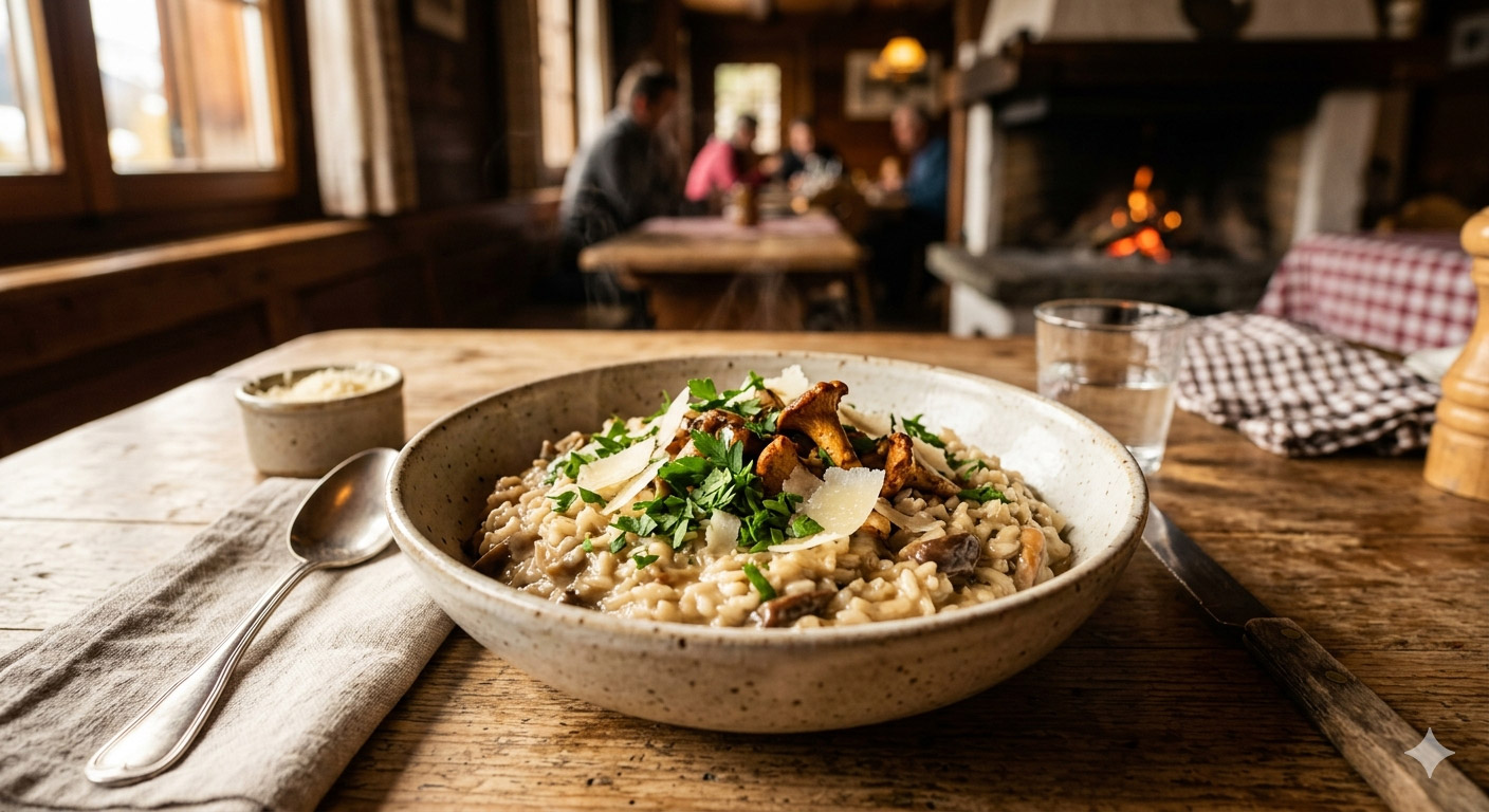 Dans une poêle séparée, faites sauter les champignons au beurre avec une pincée de sel. Incorporez-les au risotto en fin de cuisson. Ajoutez le beurre restant et le parmesan hors du feu. Remuez vigoureusement : c’est la mantecatura, étape clé pour obtenir un risotto crémeux et brillant.